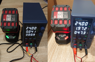- Getestet wurde mit einem manuellem hochdrehen des Labor Netzteils.